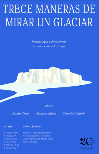 Tuvimos oportunidad de asistir a Trece maneras de mirar un glaciar, escrita y dirigida por Cynthia Fernández Trejo, dramaturga, guionista y directora de cine, un poderoso texto que nos lleva a viajar, de la mano de la viajera protagonista de la obra.