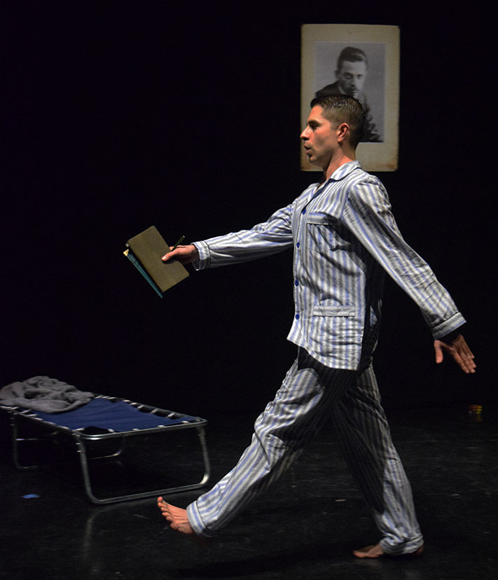 Sí y no, porque a final de cuentas nos podemos dar licencias creativas. Definitivamente cuando tienes enfrente a un personaje que existió realmente puedes basarte mucho más en material, si es que lo hay, que en el caso de Kapuz no hay tanto. Nos costó encontrar, puesto que tuve datos como su fecha de nacimiento, pude meterme a su signo zodiacal para tener ahí “chisme”, para poder inventarnos cosas. Que fue también el caso de Lorca cuando lo hice en Antes del ocaso, o el caso de Nijinsky hace muchos años y Jeffrey Dahmer por supuesto, eso apenas, ahí sí había mucha tela de dónde cortar, porque, además, a medio camino del montaje fue cuando surgió la serie, la serie nos cayó como anillo al dedo publicitario, pero nosotros ya habíamos empezado, y eso me hizo bien y qué bueno que lo traes a colación porque cuando yo vi la serie, yo la vi desde un lugar digamos un tanto crítico más que informativo, porque yo ya había hecho investigación y yo ya había empezado a construir el personaje, porque esa es otra cosa, la construcción del personaje siempre pasa por encontrar en uno esos rebotes, lo que sucede en escena, las acciones, lo que tienes en el texto, la interacción con el otro, en el caso de Dahmer con el chavillo, su próxima víctima. Todo eso, lo que te pasa internamente, siempre tiene que estar por encima del dato histórico, porque si no, no es vivencia, es información. Cuando vi la serie, la vi desde ese lugar de decir: esto me sirve, esto no me sirve, independientemente de que pueda o no ser fiel a la realidad.