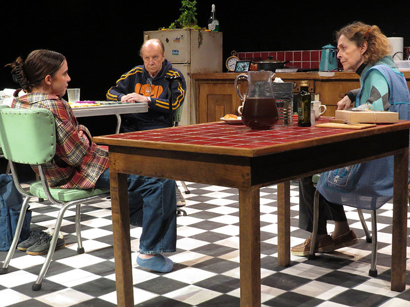 Muy poco diálogo, dos monstruos de la escena hay en el escenario, tú y Juan Carlos Colombo, eventualmente se voltean a ver, pero cada uno en lo suyo, cruzan dos o tres palabras absolutamente intrascendentes, pero llega la nieta se apodera del micrófono y no lo suelta siguen. Creo que no debe ser fácil para ustedes estar tanto tiempo en escena casi sin hablar, ¿Qué retos implica un montaje de estas características?